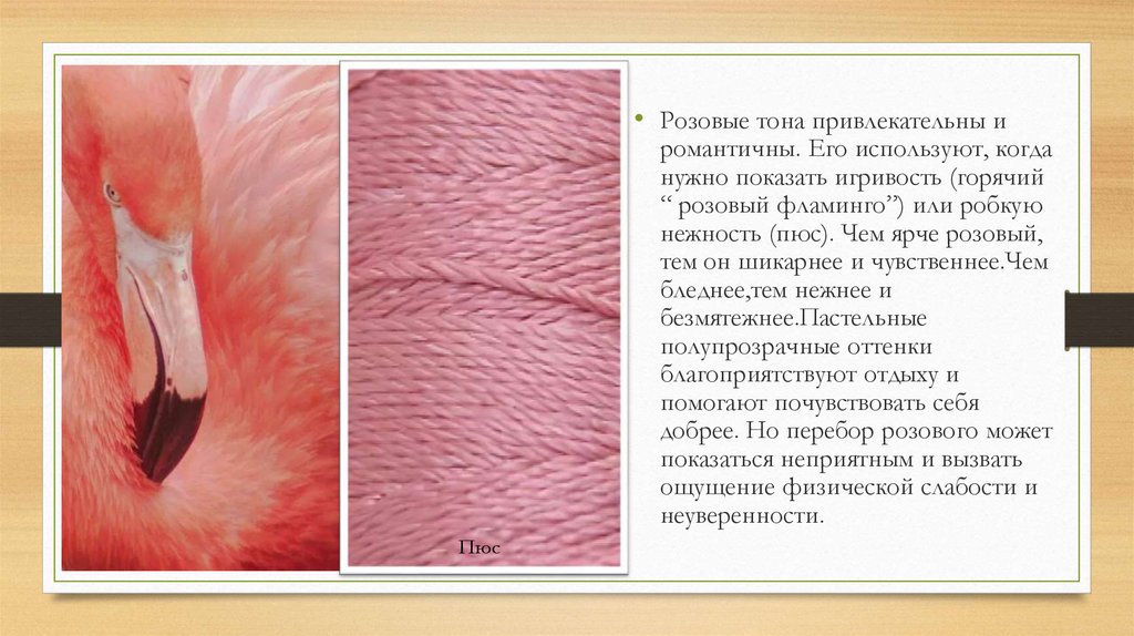 • Розовые тона привлекательны иромантичны. Его используют, когда