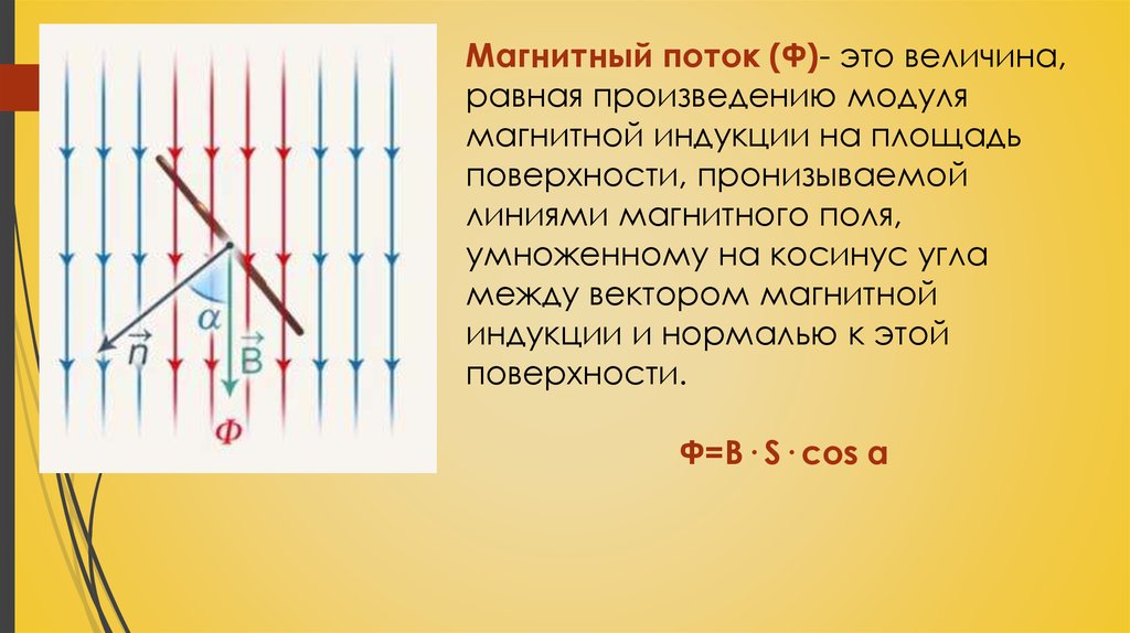 Магнитный поток (Ф)- это величина,равная произведению модуля