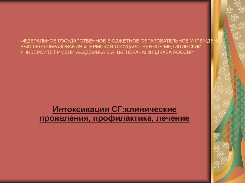УНИВЕРСИТЕТ ИМЕНИ АКАДЕМИКА Е.А. ВАГНЕРА» МИНЗДРАВА РОССИИИнтоксикация СГ:клинические