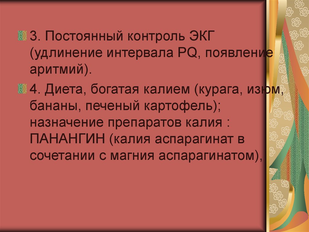 калий, или глюкокортикоидов) - Гиперкальциемия - Гипомагниемия - ИМ Постинфарктный кардиосклероз Перенесённые в прошлом операции на