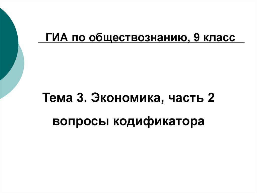 ГИА по обществознанию. Экономика, часть 2 вопросы кодификатора. Тема 3, 9 класс