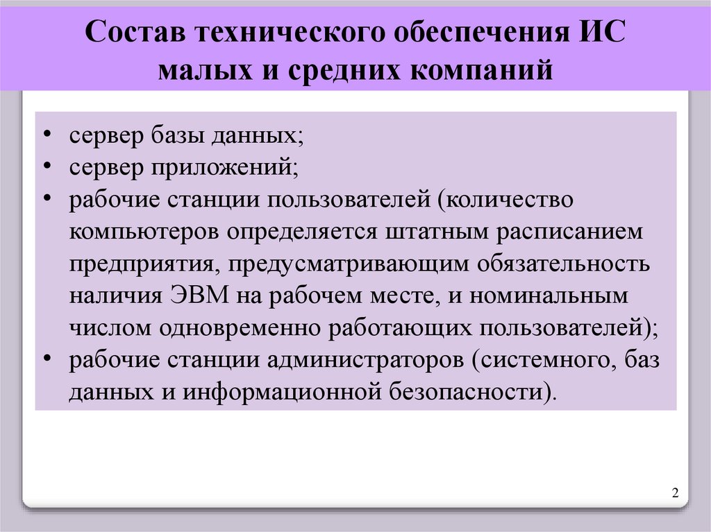 Состав технического обеспечения ИСмалых и средних компаний