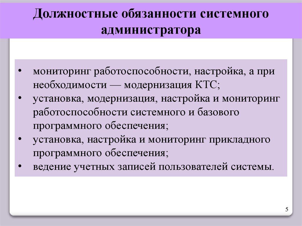 Должностные обязанности системногоадминистратора