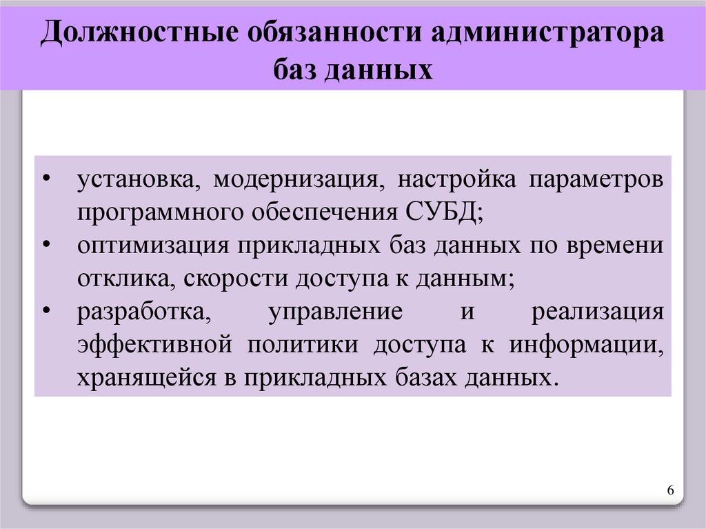 Должностные обязанности администраторабаз данных