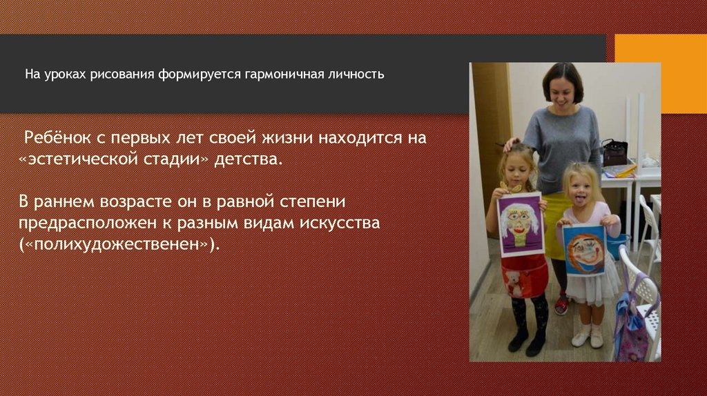 На уроках рисования формируется гармоничная личностьРебёнок с первых лет своей жизни находится на