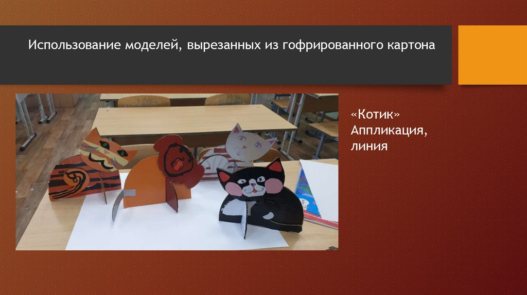 Использование моделей, вырезанных из гофрированного картона«Котик»