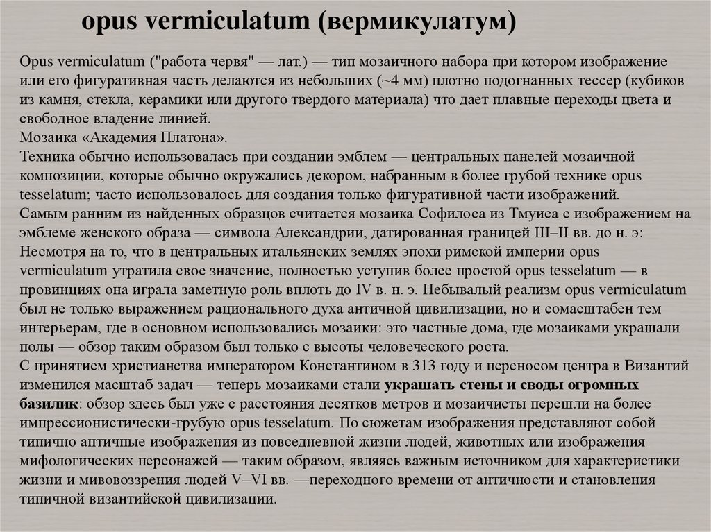 vermiculatum утратила свое значение, полностью уступив более простой opus tesselatum — в