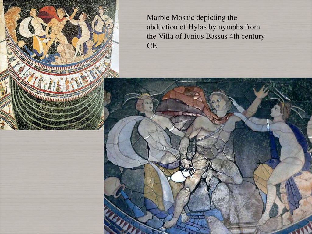 Hylas and nymphs from a mosaic in Roman Gaul (3rd century) in the Musée of SaintRomain-en-Gal (France)17.