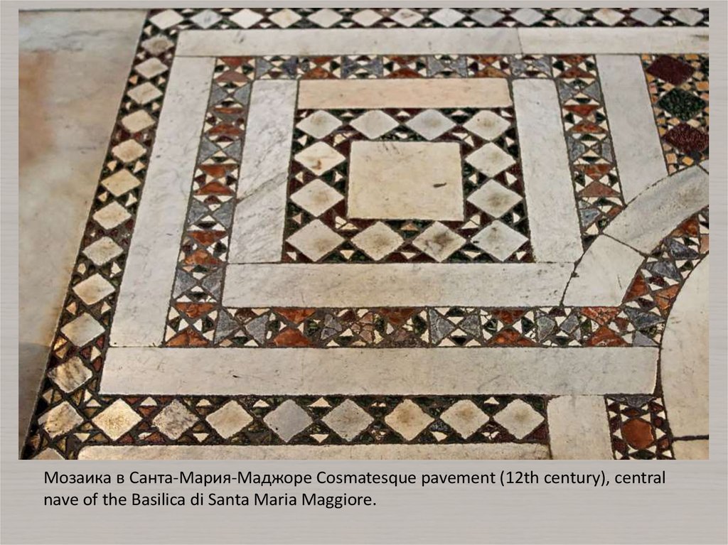 Мозаика в Санта-Мария-Маджоре Cosmatesque pavement (12th century), centralnave of the Basilica di Santa Maria Maggiore.