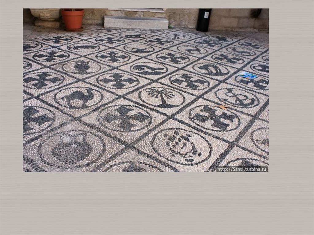 технике opus barbaricum (опус барбарикум) – напольные мозаики из морской или речной гальки.