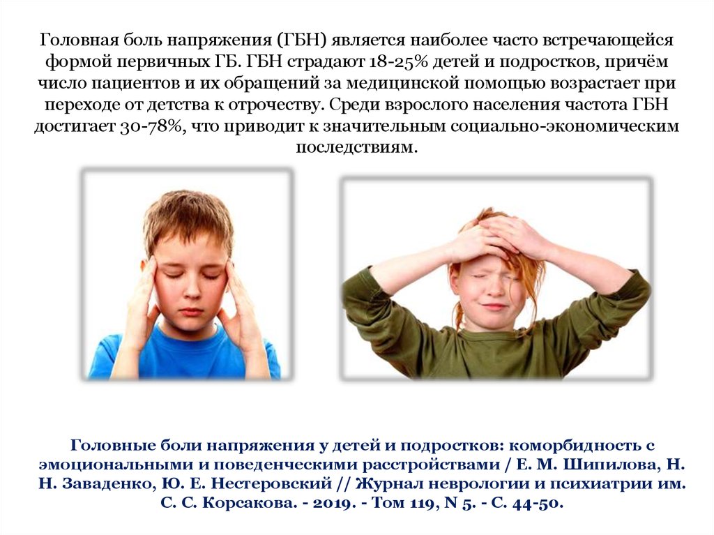 Головная боль (ГБ) – одна из частых причин обращения за медицинскойпомощью у детей и подростков, а головная боль напряжения (ГБН) –