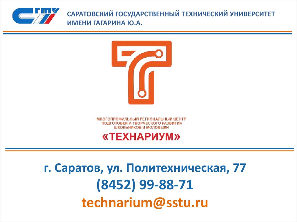 Региональный центр подготовки и творческого развития школьников Технариум, г. Саратов