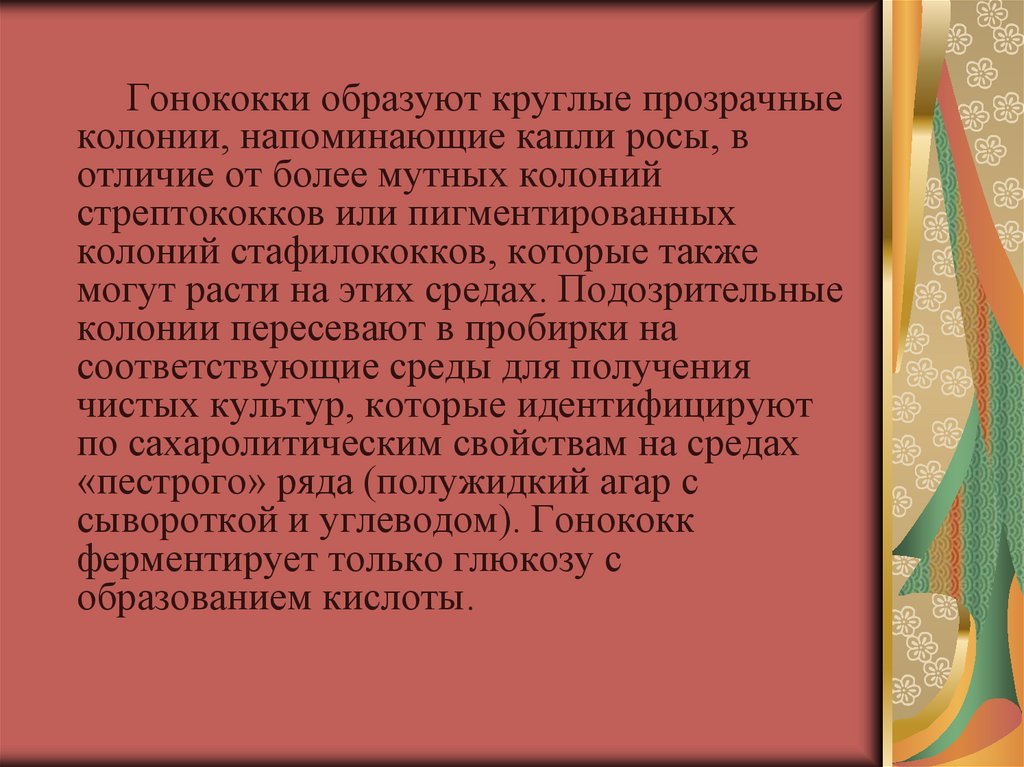 Гонококки образуют круглые прозрачныеколонии, напоминающие капли росы, в