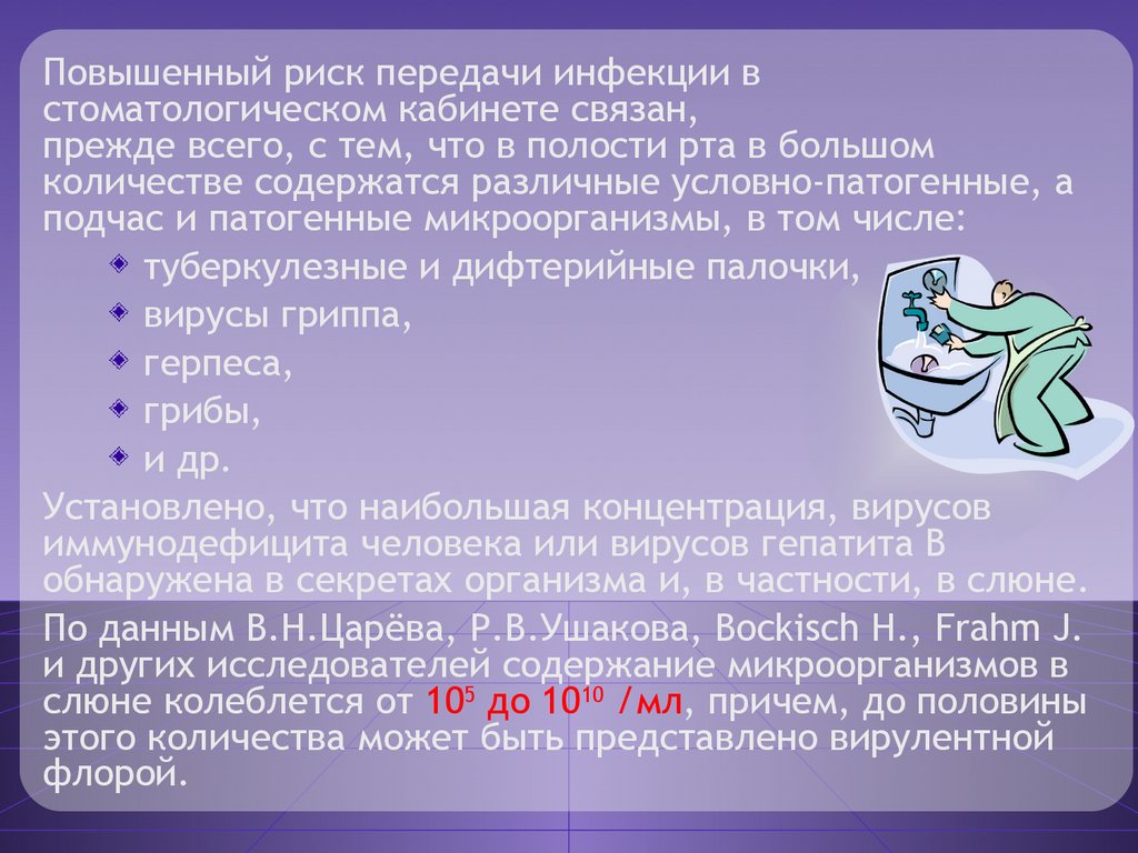 Повышенный риск передачи инфекции встоматологическом кабинете связан,