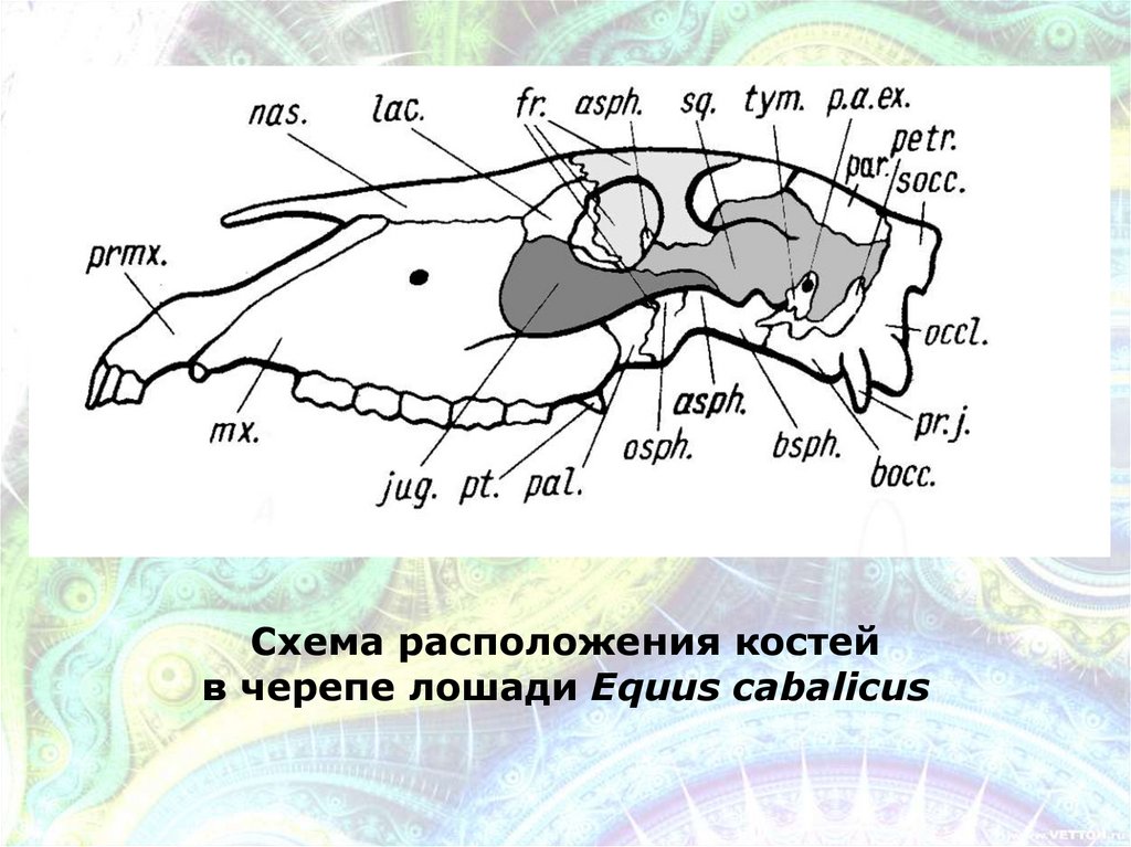 Схема расположения костейв черепе лошади Equus cabalicus