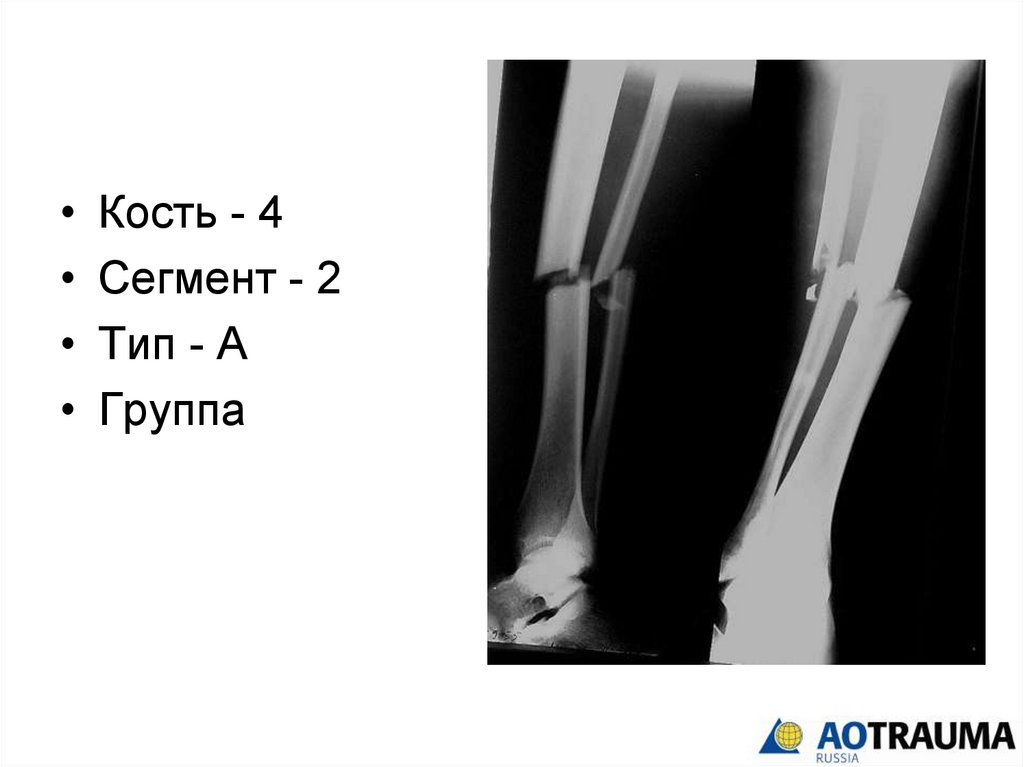 сегмент, тип и группу перелома