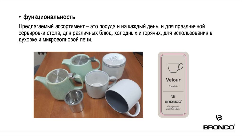 представленных ТМ BRONCO, можно мыть в посудомоечной машине, посуда стойко