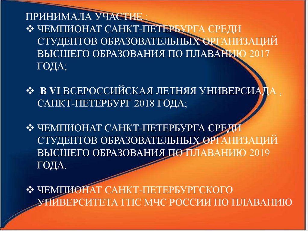 ПРИНИМАЛА УЧАСТИЕ :ЧЕМПИОНАТ САНКТ-ПЕТЕРБУРГА СРЕДИ
