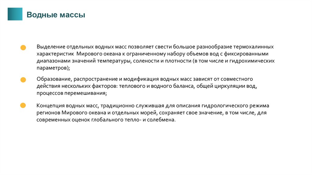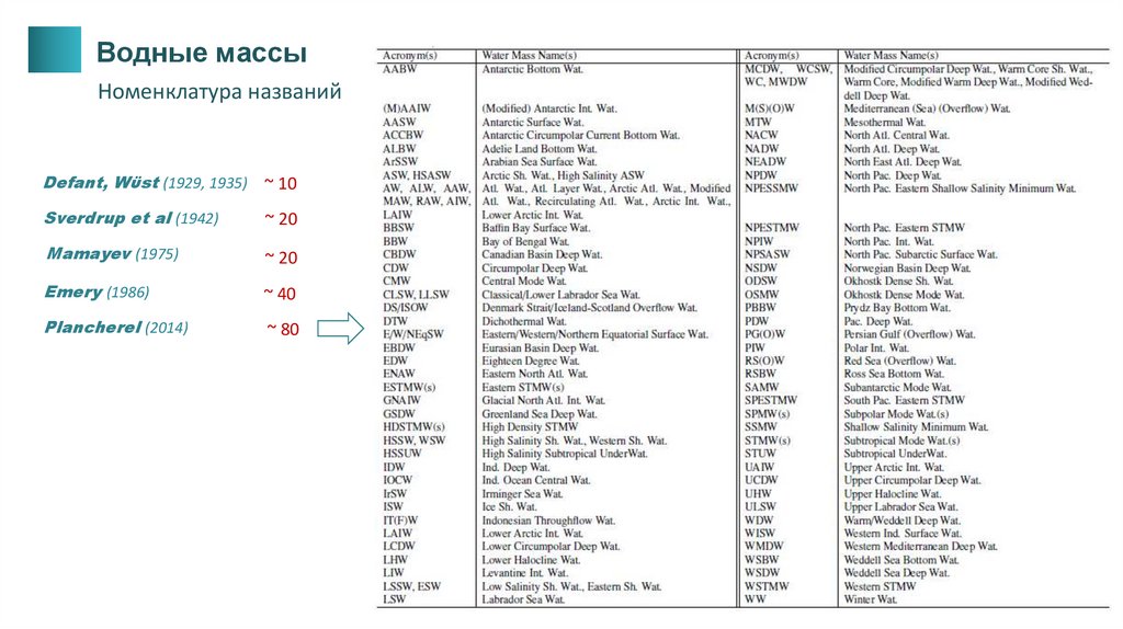 Водные массыВыделение отдельных водных масс позволяет свести большое разнообразие термохалинных