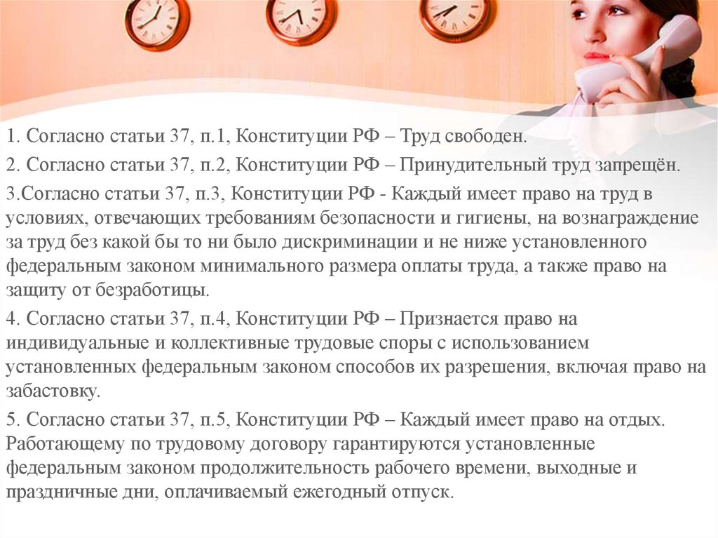 3.Согласно статьи 37, п.3, Конституции РФ - Каждый имеет право на труд в