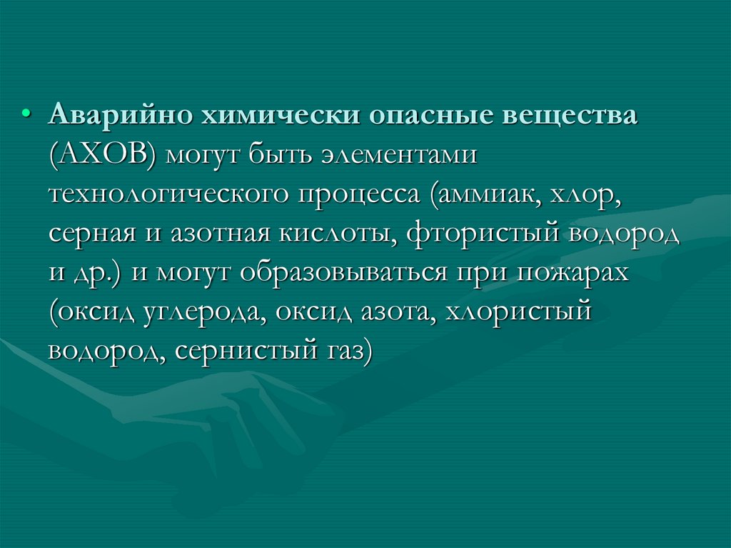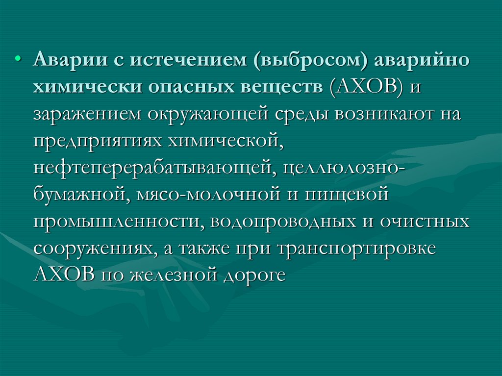• Аварии с истечением (выбросом) аварийнохимически опасных веществ (АХОВ) и