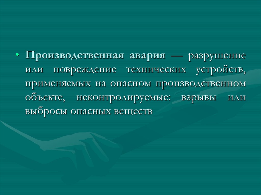 • Производственная авария — разрушениеили повреждение технических устройств,