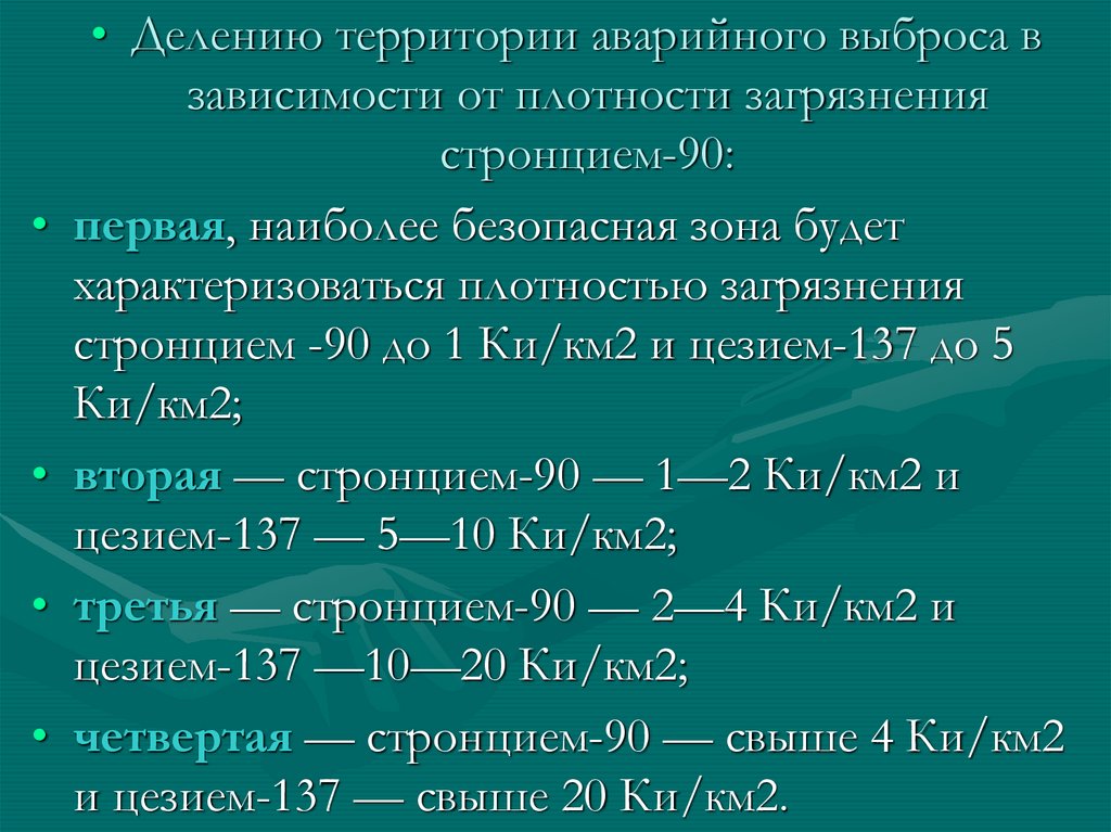 третья — стронцием-90 — 2—4 Ки/км2 и