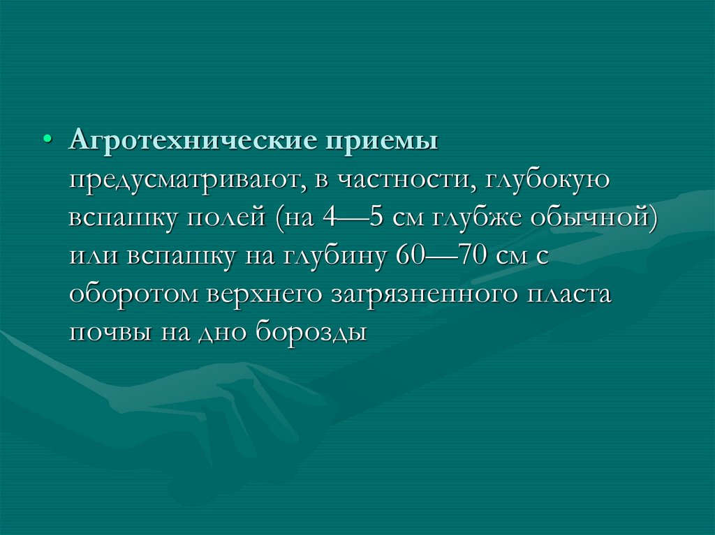 • Агротехнические приемыпредусматривают, в частности, глубокую