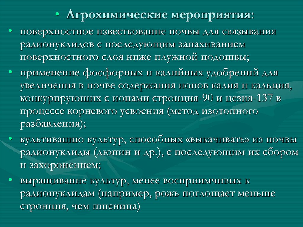 • Агрохимические мероприятия:• поверхностное известкование почвы для связывания