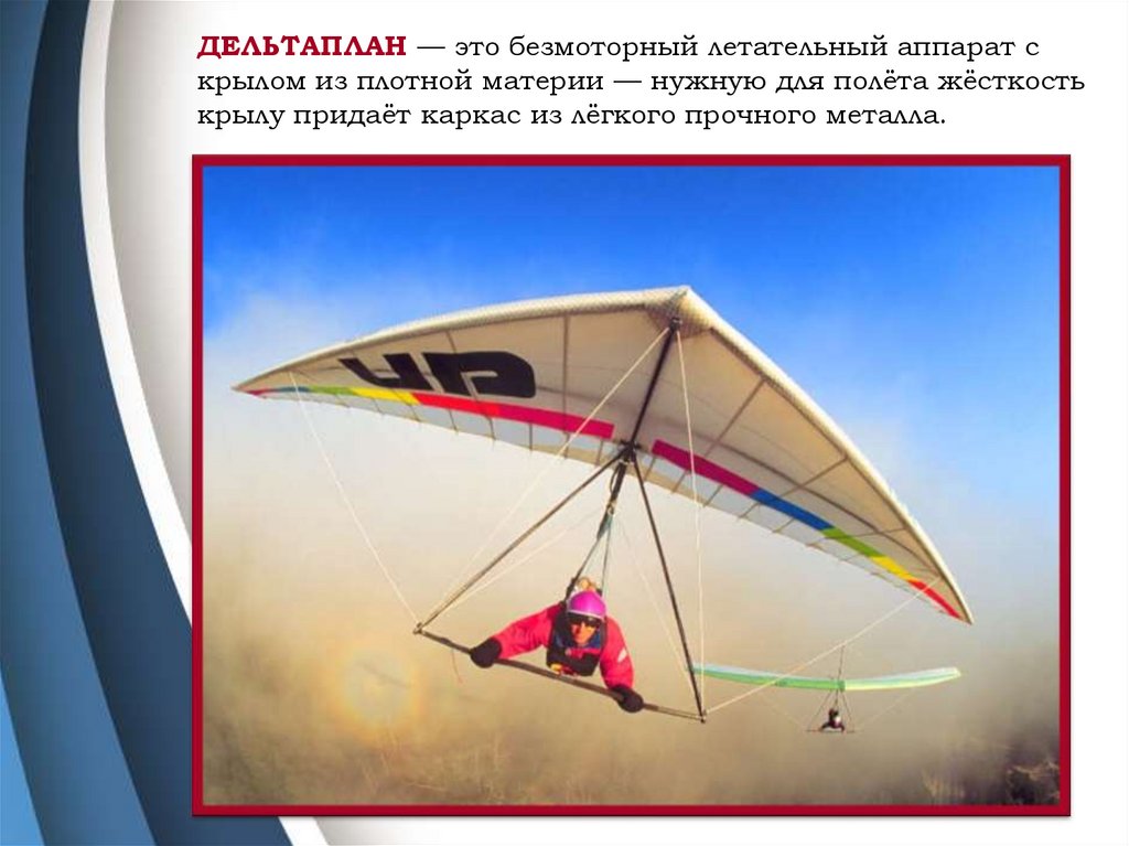 ДЕЛЬТАПЛАН — это безмоторный летательный аппарат скрылом из плотной материи — нужную для полёта жёсткость