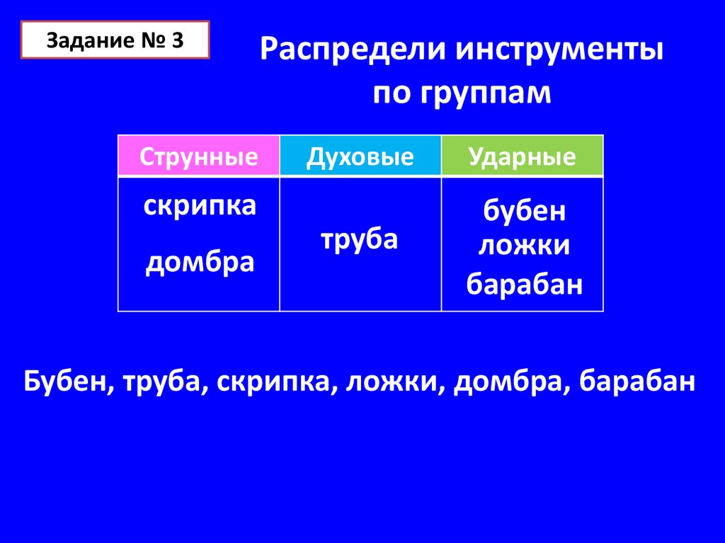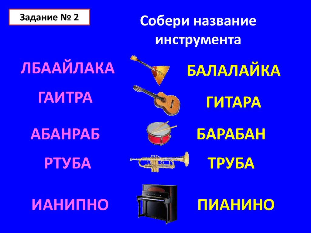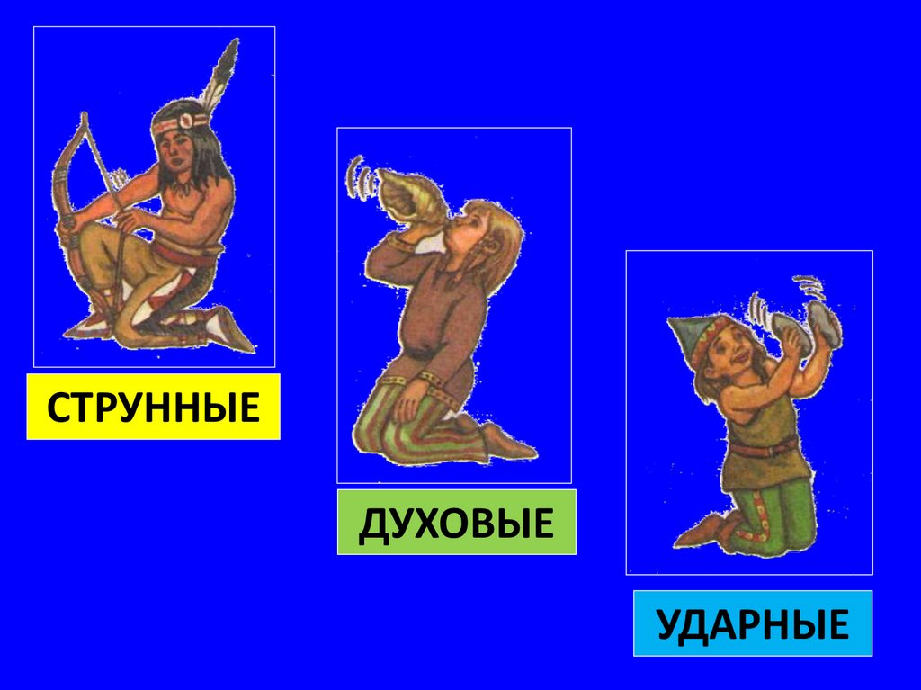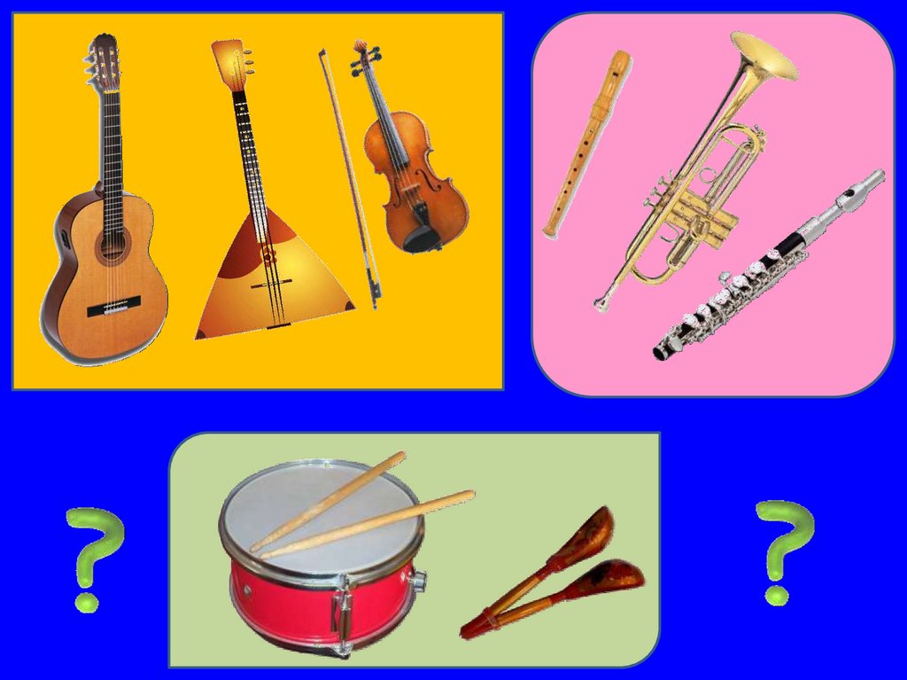 Бубен, труба, скрипка, ложки, домбра, барабан