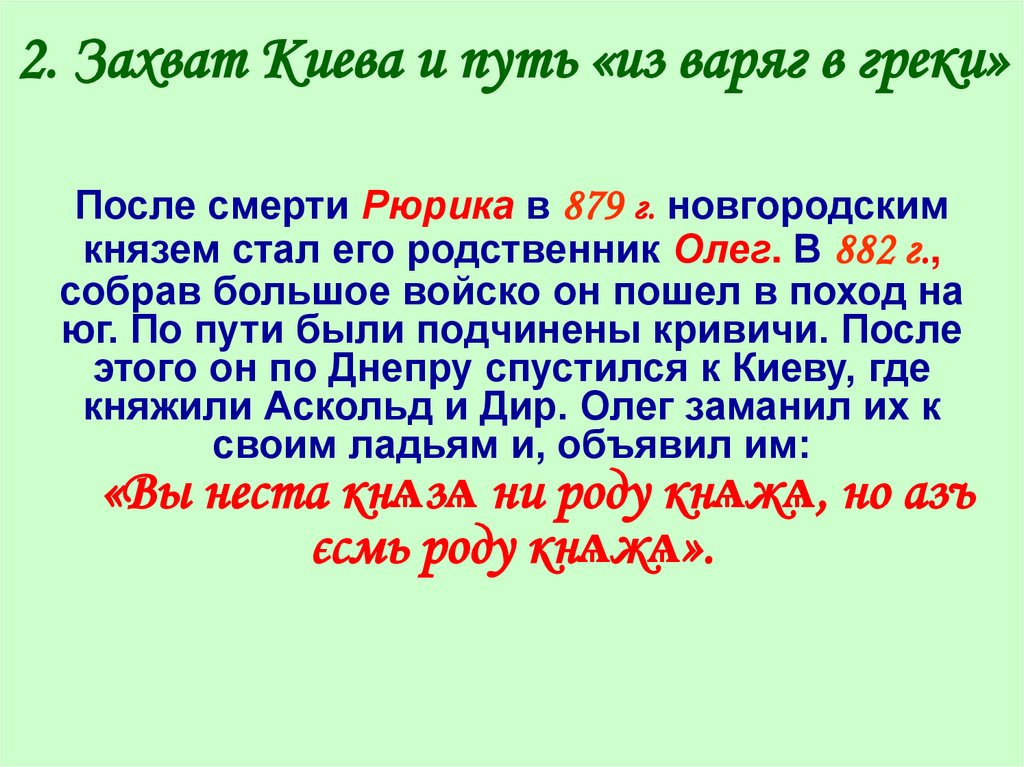 2. Захват Киева и путь «из варяг в греки»После смерти Рюрика в 879 г. новгородским
