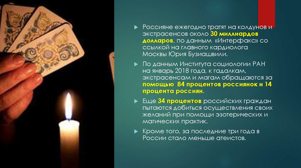Россияне ежегодно тратят на колдунов иэкстрасенсов около 30 миллиардов