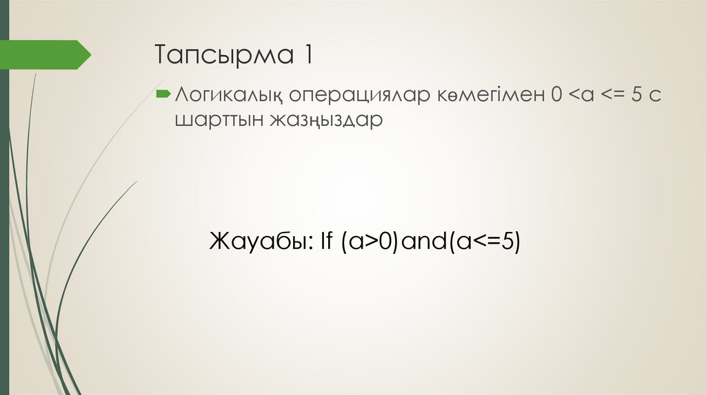 а 5-тен кем емес шарттын логикалық операцияларкөмегімен жазыңыздар. If (a>=5) түрінде жазуға болады