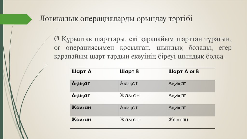 Логикалық операциялар көмегімен қарапайым шарттарды құрылтақ шарттарға