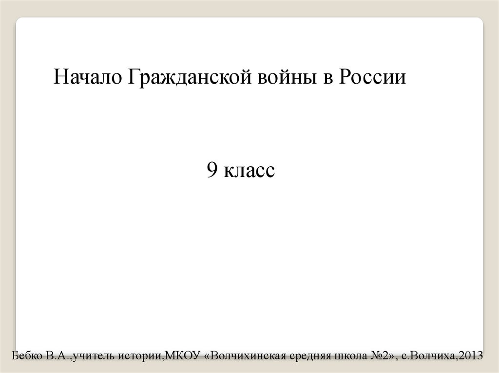 Бебко В.А.,учитель истории,МКОУ «Волчихинская средняя школа №2», с.Волчиха,2013