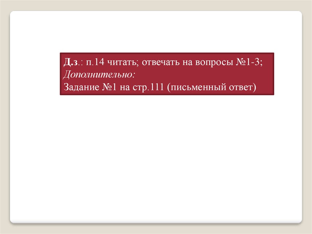 Д.з.: п.14 читать; отвечать на вопросы №1-3;Дополнительно: