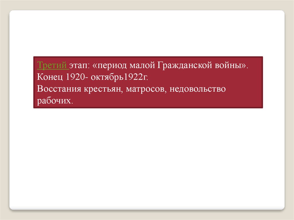 Третий этап: «период малой Гражданской войны».Конец 1920- октябрь1922г.