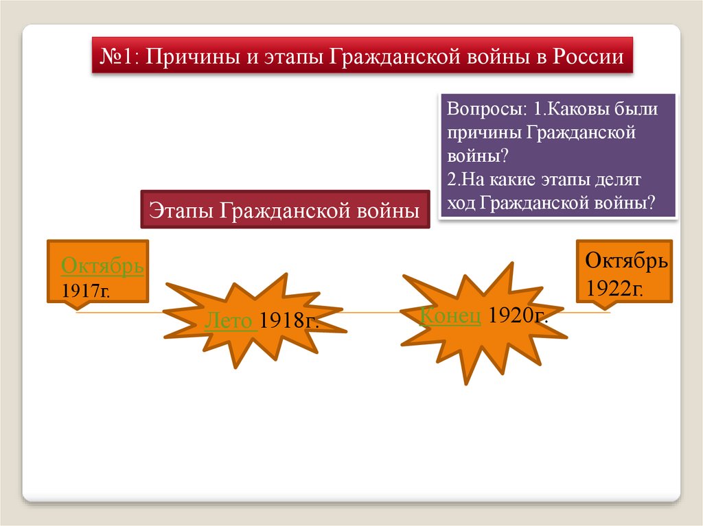 №1: Причины и этапы Гражданской войны в РоссииЭтапы Гражданской войны