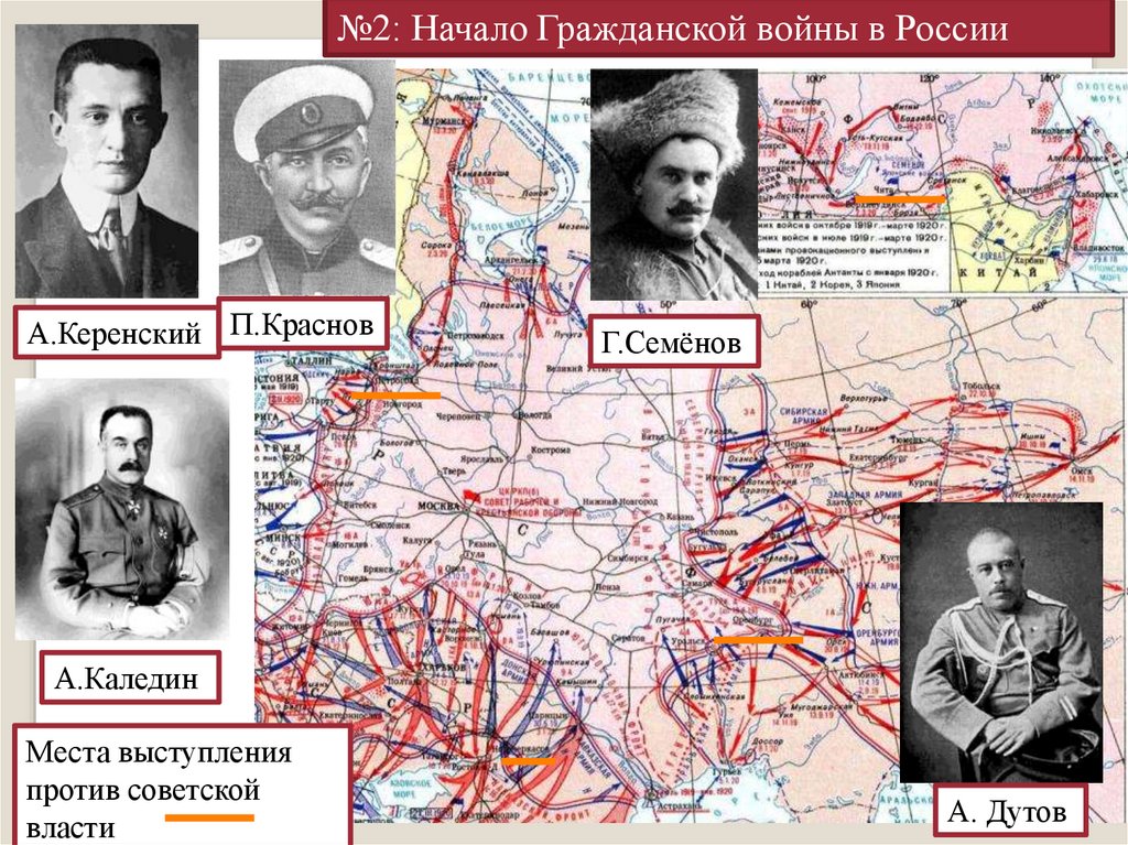 №2: Начало Гражданской войны в РоссииА.Керенский П.Краснов