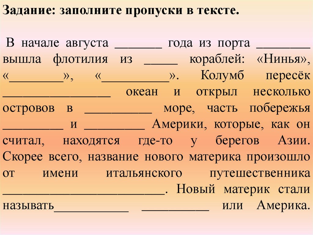 1. Тема Открытие Америки