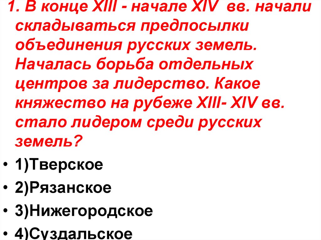 20. 18.Отметьте причины и предпосылки объединения русских земель