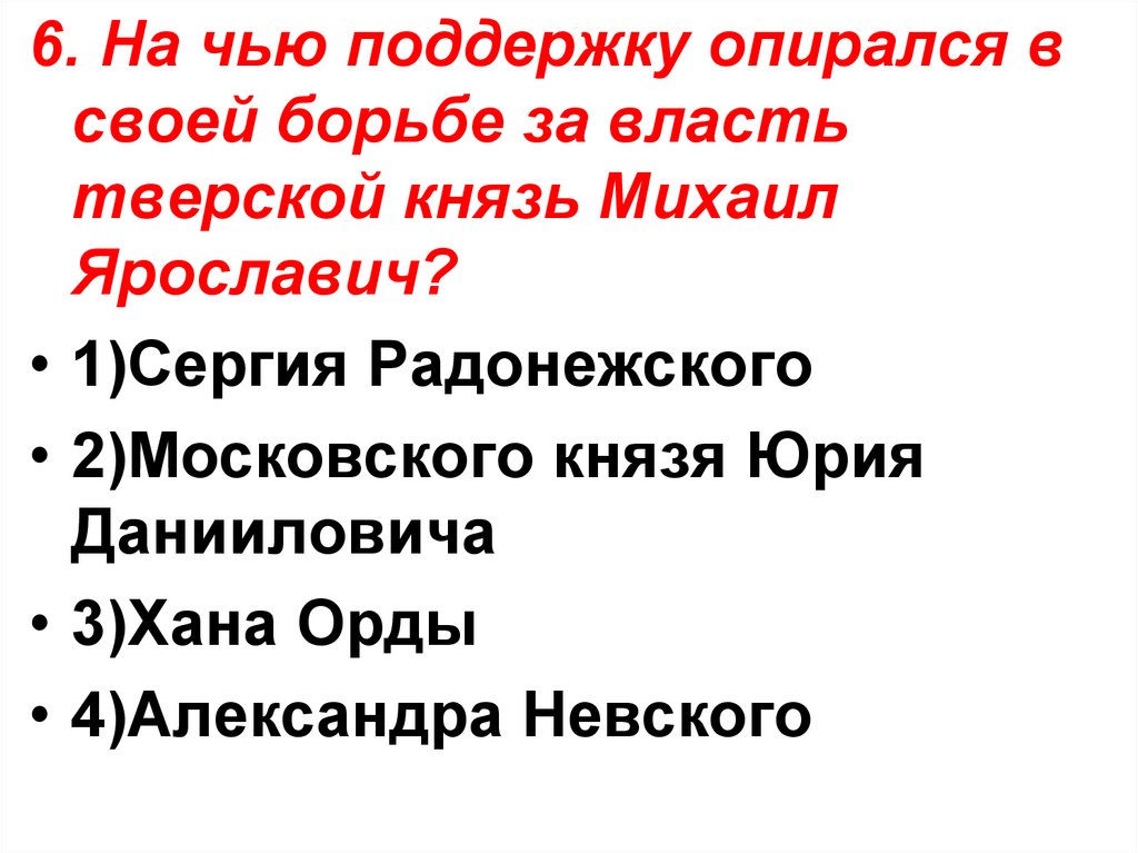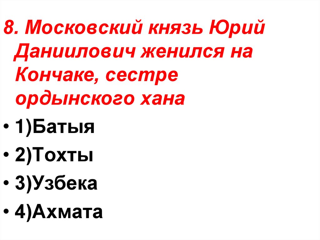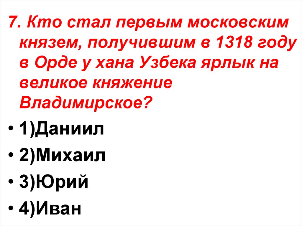 7. Кто стал первым московскимкнязем, получившим в 1318 году