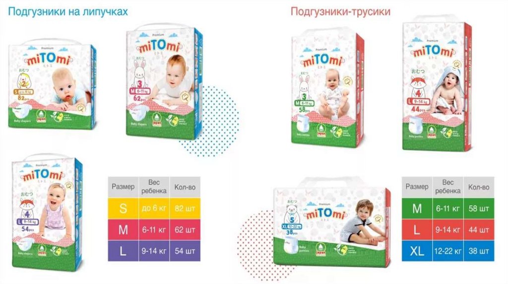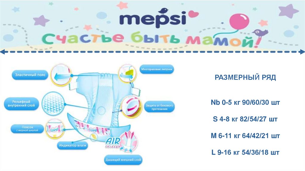 РАЗМЕРНЫЙ РЯДM 6-11 кг 58 шт