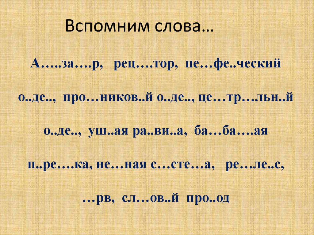 А…..за….р, рец….тор, пе…фе..ческийо..де.., про…ников..й о..де.., це…тр…льн..й
