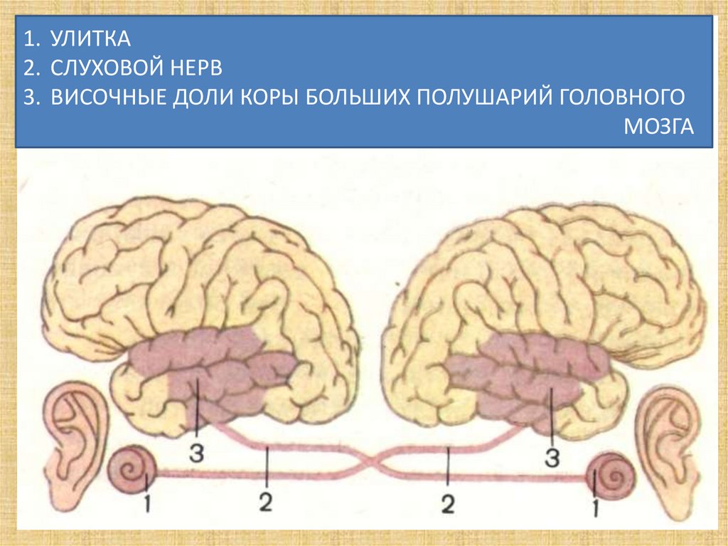 1. УЛИТКА2. СЛУХОВОЙ НЕРВ