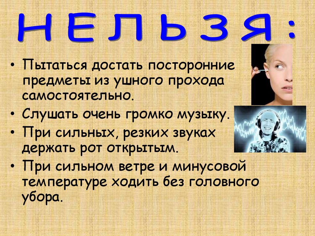 1. Ушная раковина – собирает звуки из окружающей среды;2. Наружный слуховой проход (НСП) – проводит звуки в ухо;