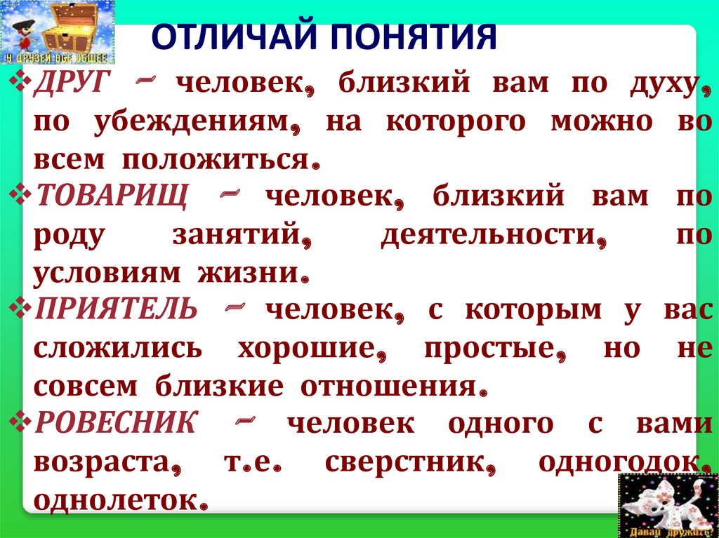 ОТЛИЧАЙ ПОНЯТИЯДРУГ – человек, близкий вам по духу,