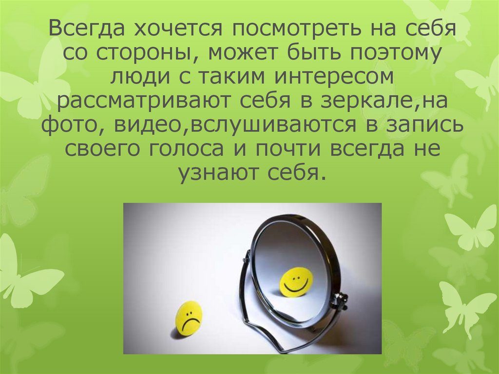 Всегда хочется посмотреть на себясо стороны, может быть поэтому