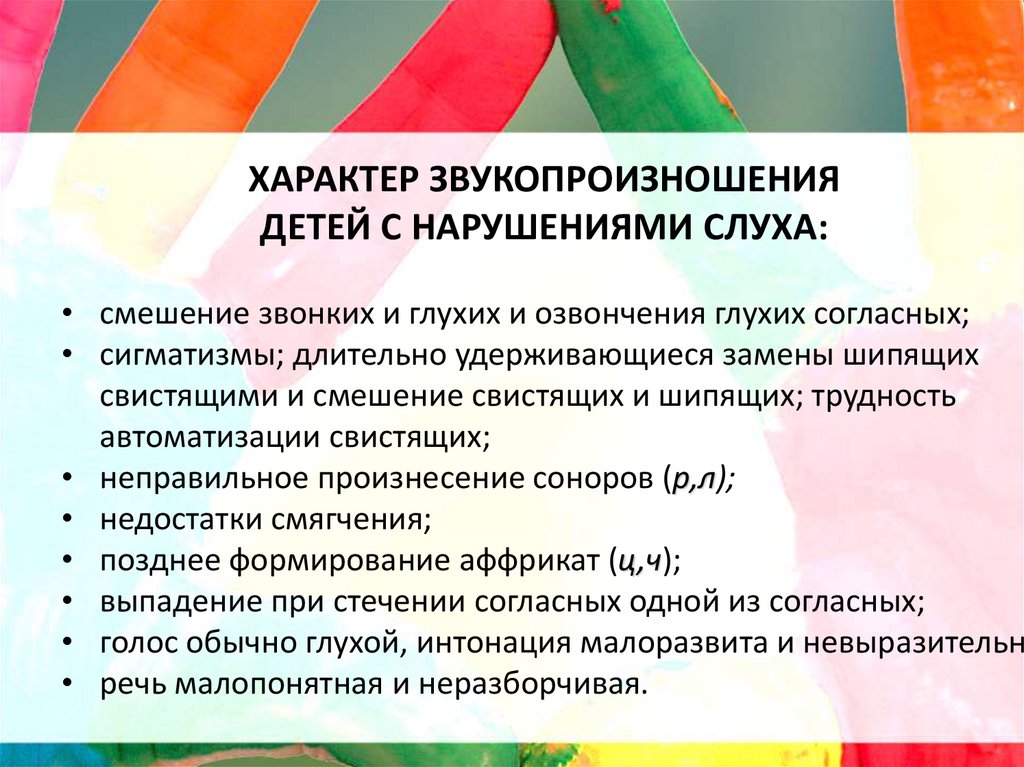 ХАРАКТЕР ЗВУКОПРОИЗНОШЕНИЯДЕТЕЙ С НАРУШЕНИЯМИ СЛУХА: